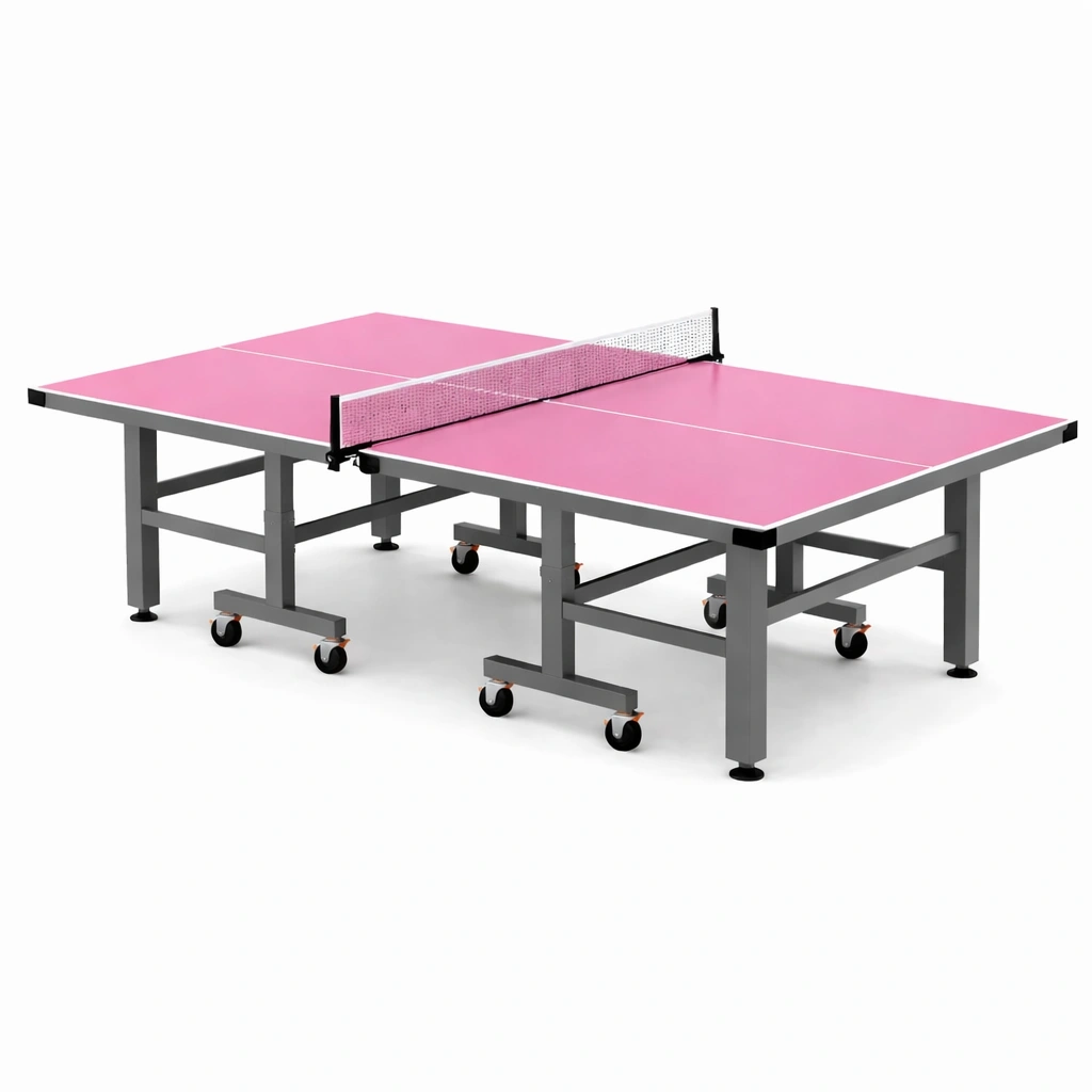 Tavolo da ping pong pieghevole con ruote in mdf rosa e acciaio