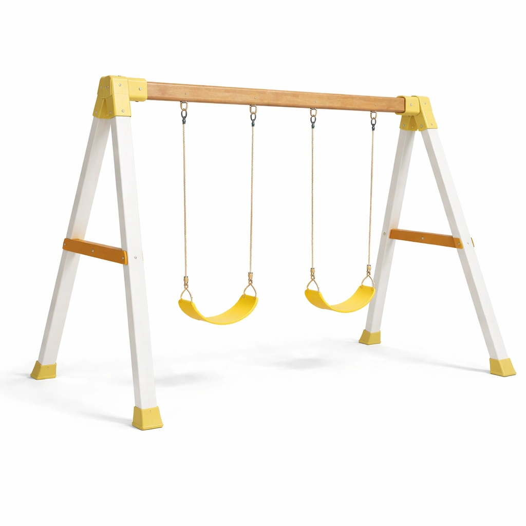 Materiale principale: Legno di pino, Sedile: Polietilene ad alta densità (HDPE), Catene: Acciaio zincato